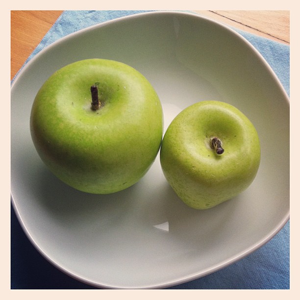 Apfelkerzen. Die größere sieht wirklich wie ein echter Apfel aus.